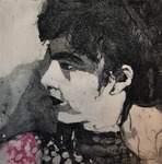 2021Ets, droge naald, aquatint. Uit mondkapjes-serie in het kader van de Corona pandemie.