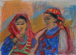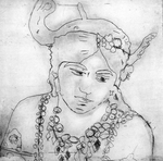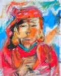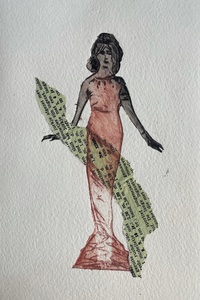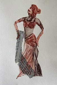 2025Ets compositie van een droge naald en van een aquatint ets gecombineerd met een Chine collé-ecoprin. Vrijheid in de Friese natuur, vrijheid en verbondenheid, over mijn wortels in Friesland. Het vrouwfiguur verwijst naar vroegere tijden, naar oorsprong. De zwarte jurk is met goudpoeder bewerkt, een symbool voor " "waardevol". Moederland/ Motherland heb ik de ets later ook genoemd. Op de achtergrond de Gele Bostulp (stinzenflora).