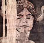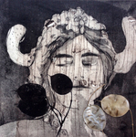 2020Ets geinspireerd op mijn oorsprong, boerendochter, Friesland. De ets is deels gedrukt op oude melklijst.