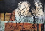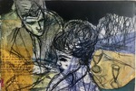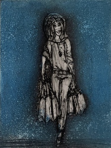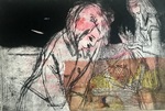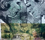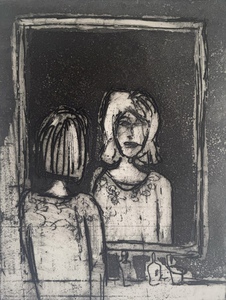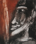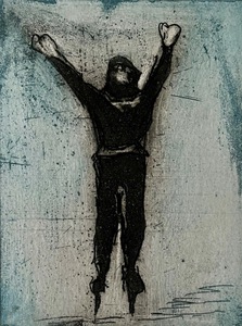 2021Ets, droge naald, aquatint. Uit mondkapjes-serie in het kader van de Corona pandemie.