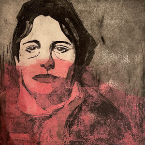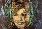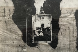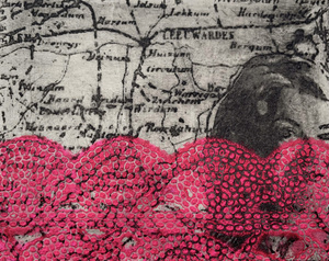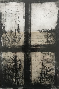 2020Ets geinspireerd op mijn oorsprong, boerendochter, Friesland. De ets is deels gedrukt op oude melklijst.