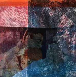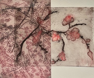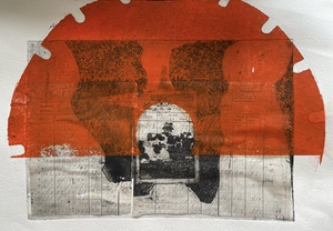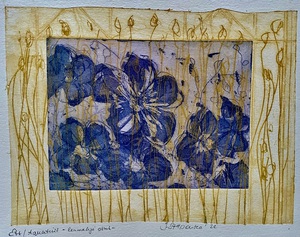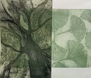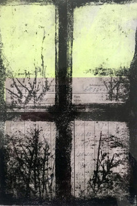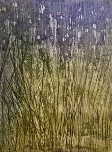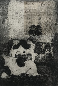 2023Ets aquatint, sjabloondruk, Chine collé, gedrukt opporde melklijst