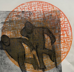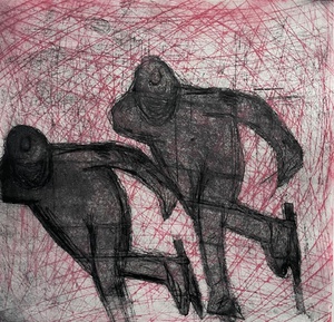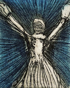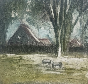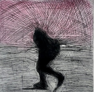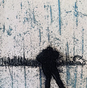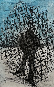 2021Droge naald, aquatint, gemaakt voor het Internationale postcard project "See Things in Perspective" in Amsterdam, in het kader van de Corona pandemie.
