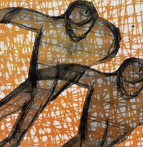 2021Ets, Chine collé (oude melklijst), met acrylverf